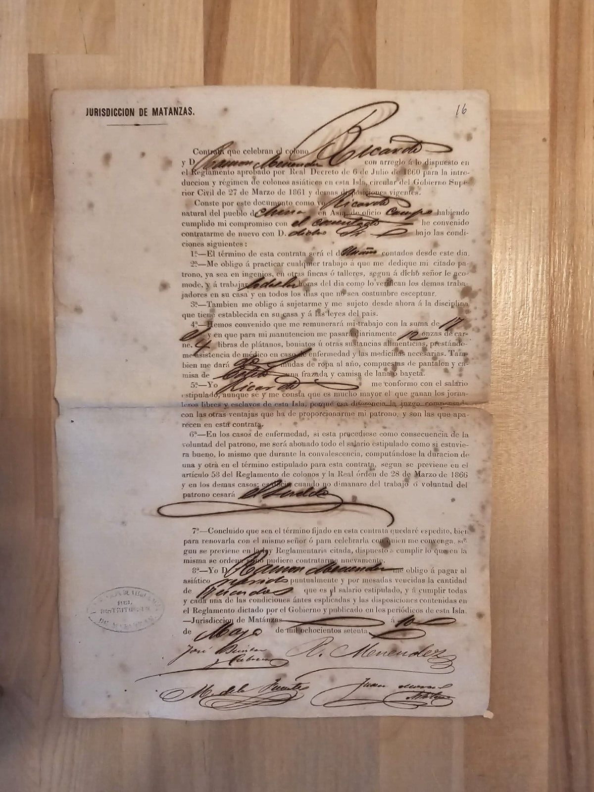 ANTIQUE SPAIN COLONY Letter 1861 Chinese Working Contract MATANZAS DOCUMENT