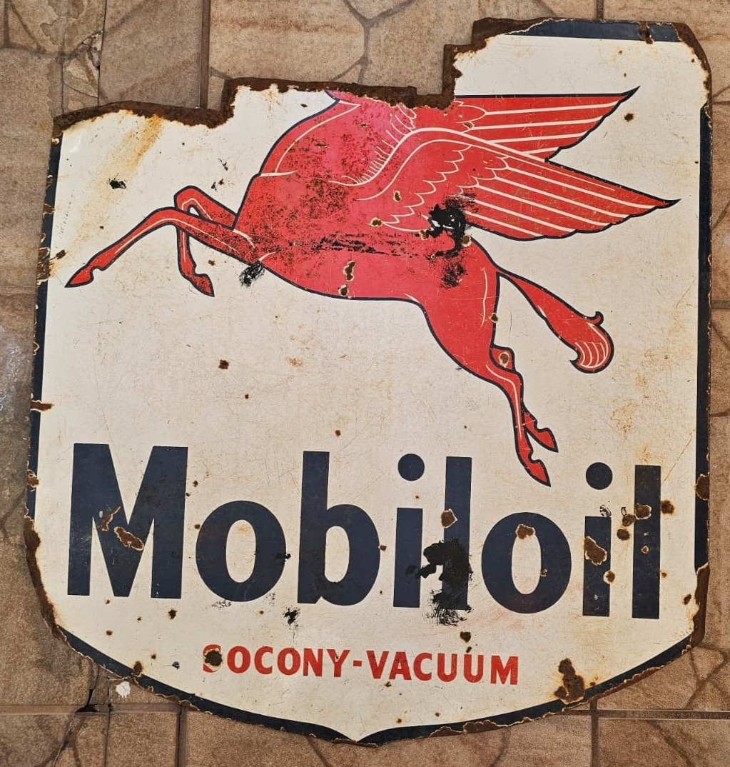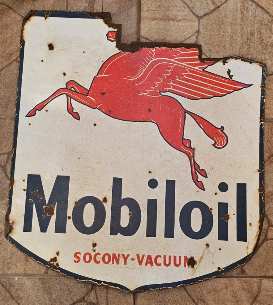 Mobiloil w/Pegasus SOCONY VACUUM PORCELAIN Sign SPANISH 1940s ORIG