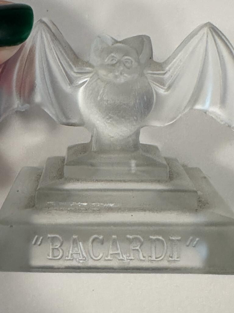RARE BACARDI RUM RON LALIQUE GLASS ADVERTISING PAPERWEIGHT 1950s ART DECORATIVE