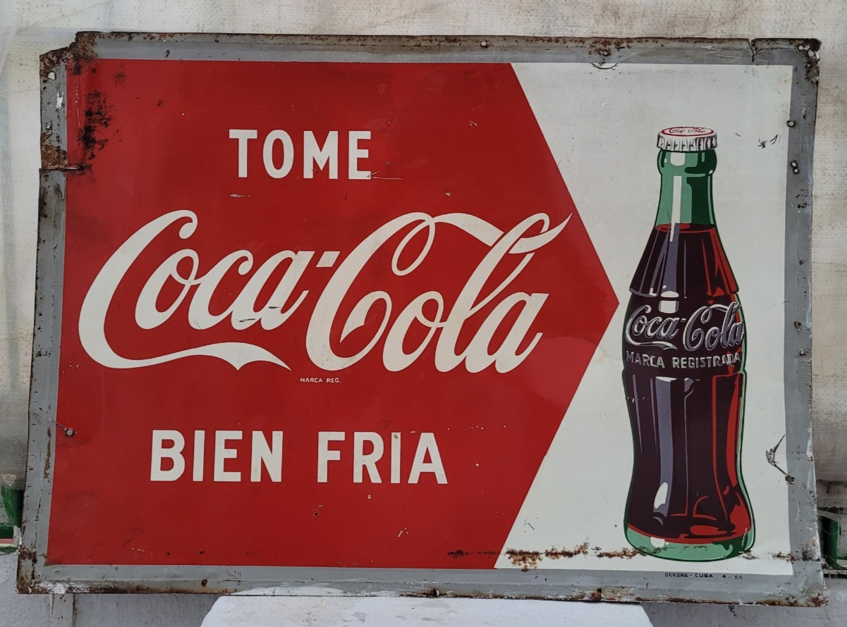 RARE EARLY COCA COLA PAINTER SIGN TOME BIEN FRIA COLD SPANISH 28x20 INCHES