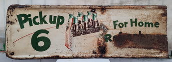 SUPER RARE EARLY COCA COLA 1956 PICK UP 6 TIN HORIZONTAL SIGN 19.5"x53.25"