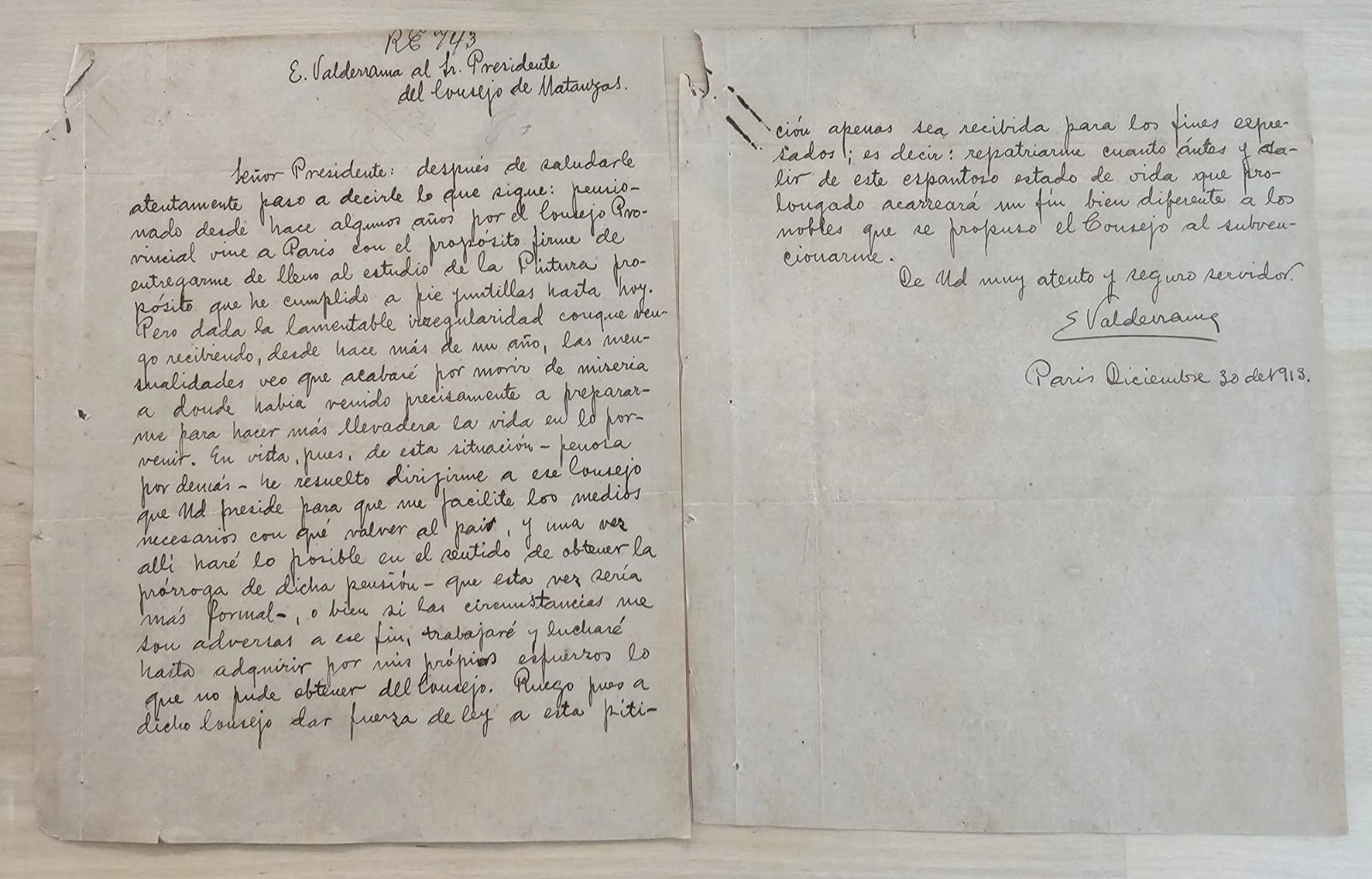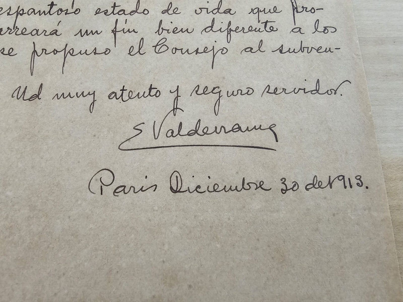 1913  ART PAINTER ESTEBAN VALDERRAMA ALS Signed Document AUTOGRAPHED