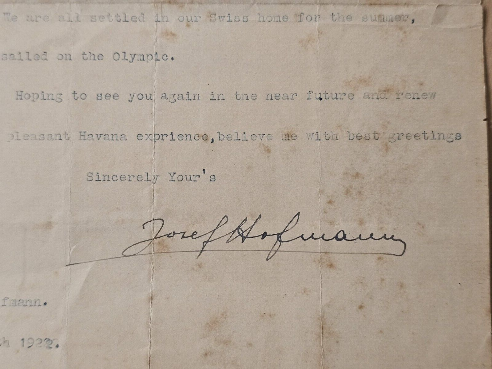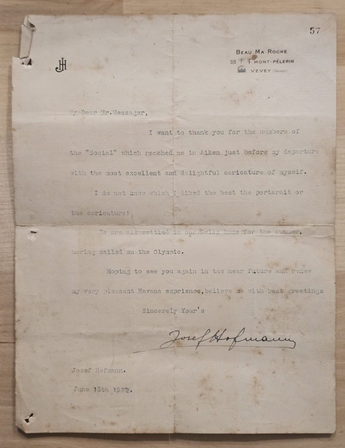 1922 POLISH PIANIST Josef Casimir Hofmann SIGNED DOCUMENT LETTER ORIG 514