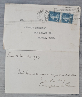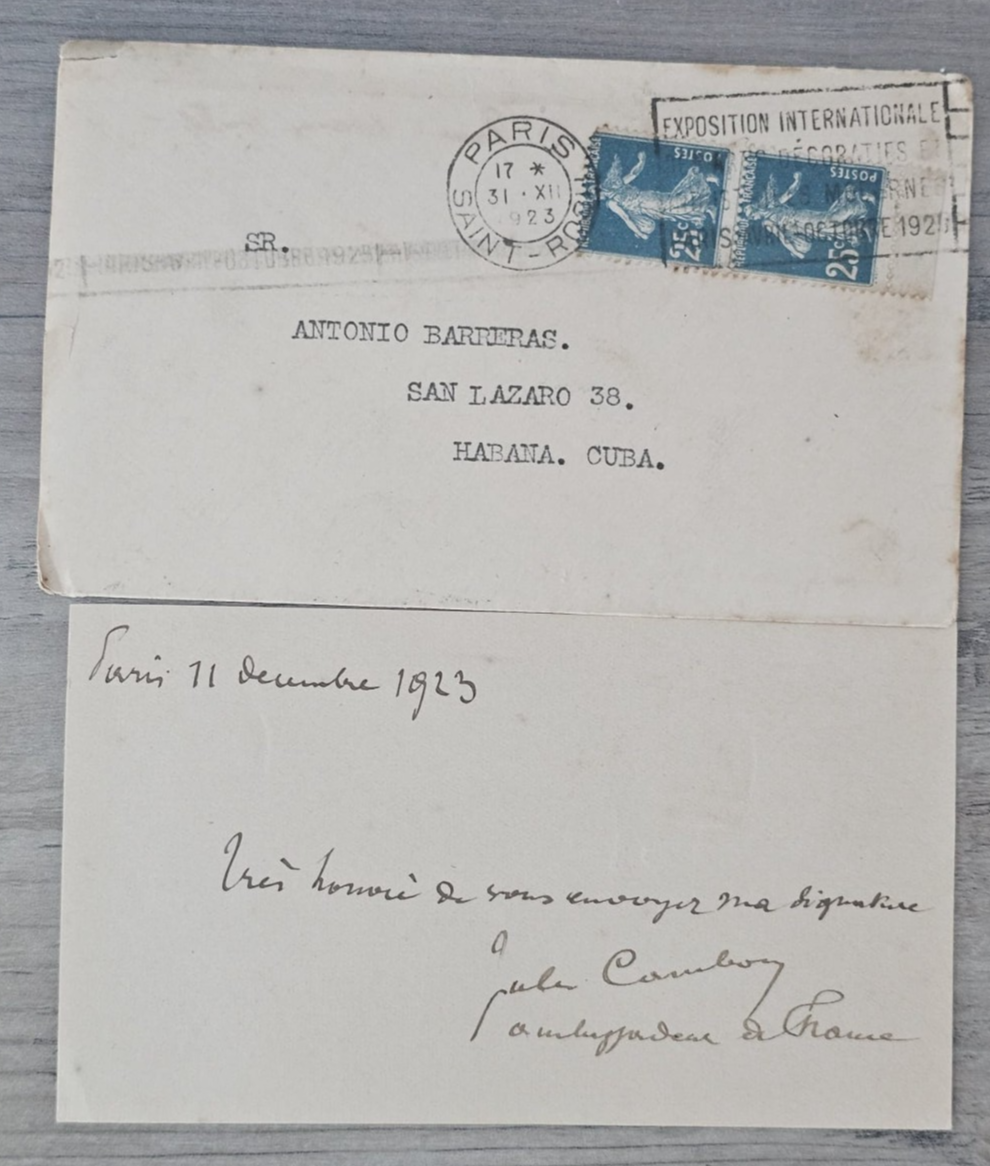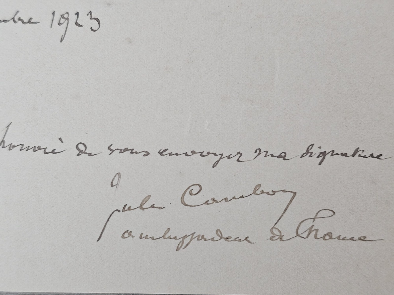1923 French Ambassador United States JULES CAMBON SIGNED AUTOGRAPH ORIGINAL 673