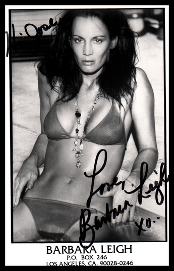 Barbara Leigh's signature, thoughtfully penned, adds a personal touch to this exceptional piece. Whether you're a dedicated fan of her work or simply admire her beauty and artistry, this autograph is a cherished symbol of her impact in the world of entertainment and modeling.