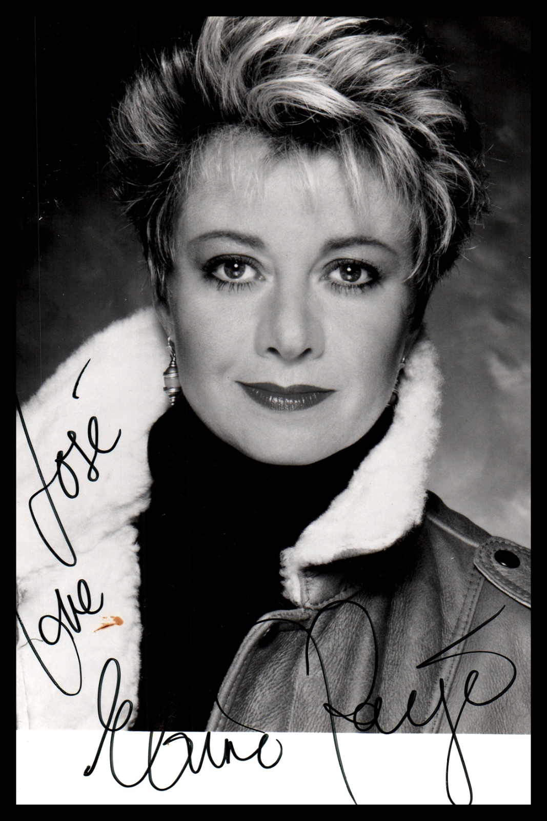 This original autographed photo captures Elaine Paige's enduring beauty and charisma. Her graceful expression and timeless appeal are beautifully showcased, making it a cherished piece of memorabilia.