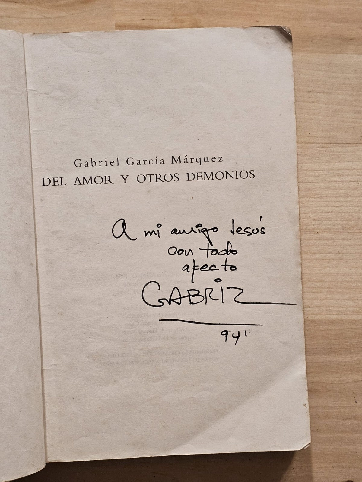 RARE GABRIEL GARCIA MARQUEZ SIGNED INSCRIBED AUTOGRAPH 1992 BOOK AMOR DEMONIOS