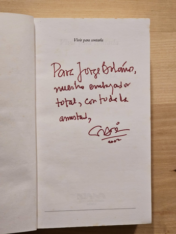 RARE GABRIEL GARCIA MARQUEZ SIGNED INSCRIBED AUTOGRAPH 2002 BOOK VIVIR CONTARLA