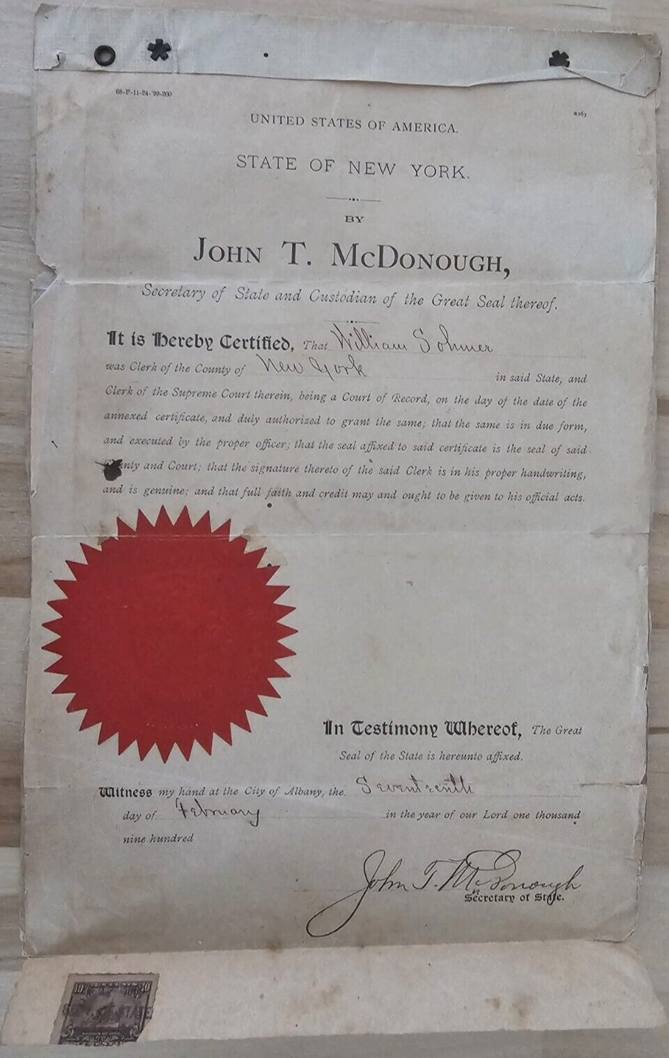 UNIQUE NYC John McDonough Signed Autograph Document 1900 SECRETARY OF STATE