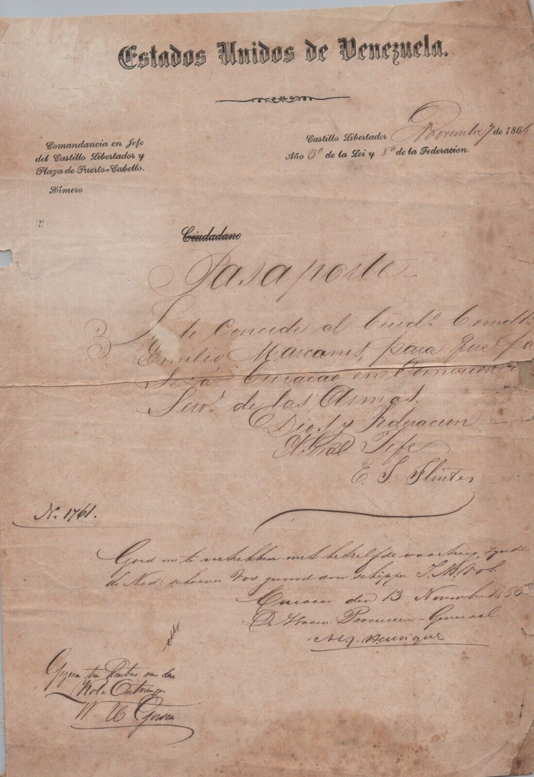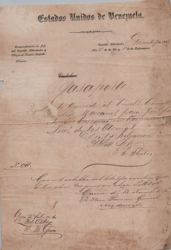 UNITED STATES OF VENEZUELA PASSPORT COMMANDER CHIEF AUTOGRAPH DOCUMENT 18607