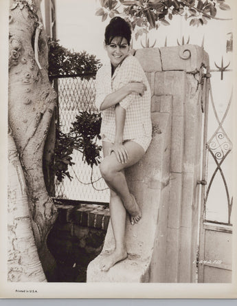 This vintage gelatin-silver print photograph featuring Claudia Cardinale is a must-have for any fan of Hollywood's golden era. Measuring 8 x 10 inches, this unframed black and white print captures the Italian actress in a sensual pose, showcasing her beautiful legs.