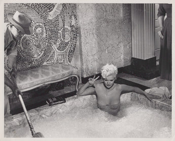 Capture the glamour of Hollywood's golden era with this original 1950s gelatin-silver print photograph of iconic actress Jayne Mansfield. The stunning 10 x 8 inch image features Mansfield in a seductive pose, exuding confidence and charm. Perfect for collectors of vintage Hollywood memorabilia and fans of classic cinema, this antique photograph is a must-have addition to any collection. The photo is printed on high-quality paper and is in excellent condition. Own a piece of cinematic history with this beautiful and timeless image of one of Hollywood's most beloved actresses.