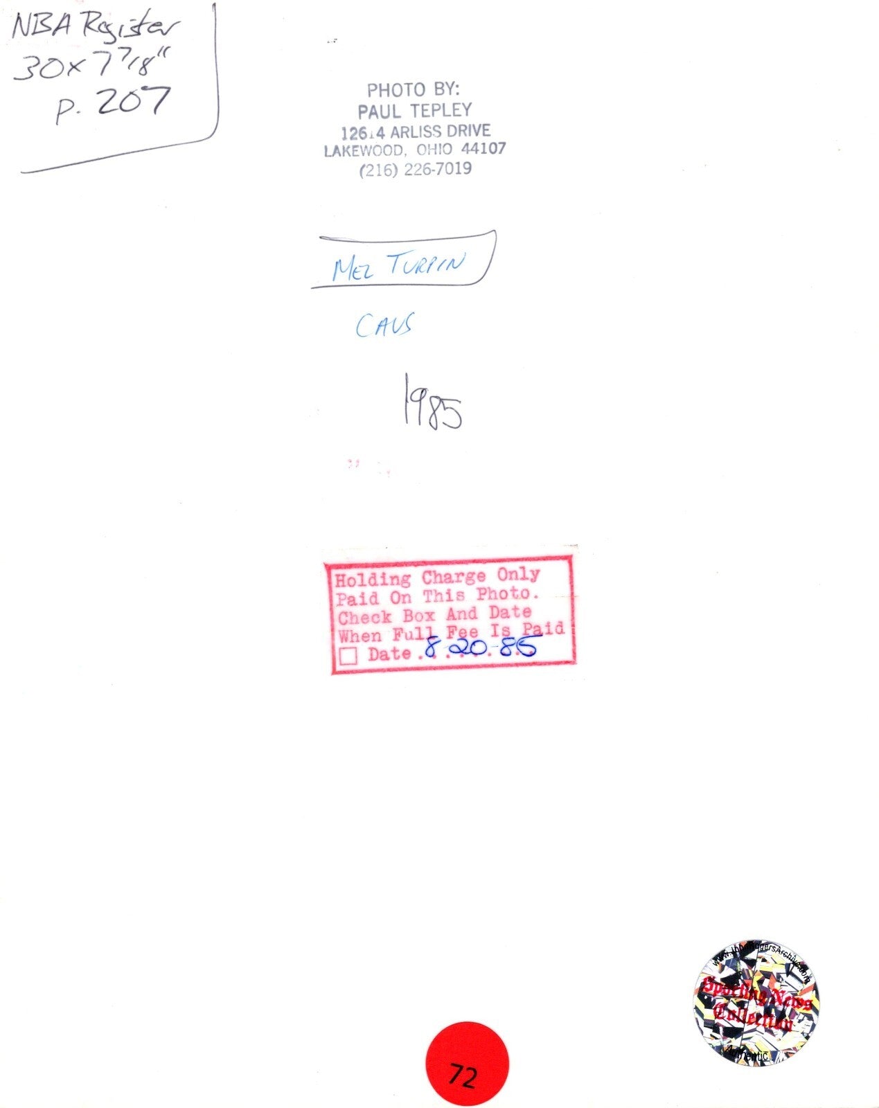 This original NBA press photo features Melvin Turpin, an American retired basketball player. The black and white gelatin-silver print measures 8 x 10 inches and is made of paper. The photograph was taken in 1985 and showcases Turpin in action on the basketball court. The photo is an antique and is an original production, not a licensed reprint. It is a collectible item that would be perfect for any sports fan or collector. The image color is black and white, making it a classic piece that will never go out of style. The production technique used to create the photo is gelatin-silver print, and it was made in the United States. The featured person in the photograph is Melvin Turpin, a popular basketball player.