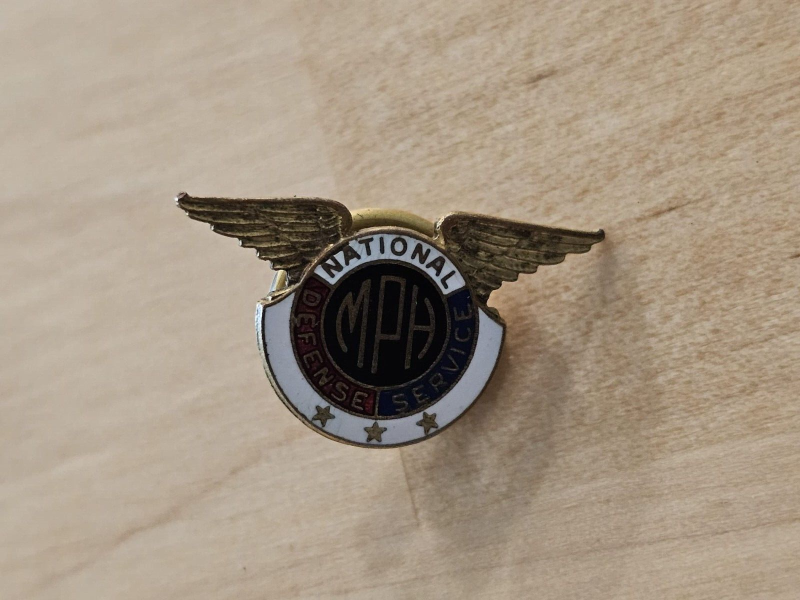 Rare National Defense Service for Service 30 years Wing Pilot Pin Button 1940s