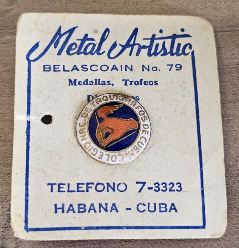 RARE PIN COLEGIO DE TAQUIGRAFOS HAVANA COLLEGE ENAMEL BUTTON 1920s