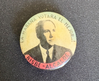 RARE PIN MAYOR CAMPAIGN BISBE ALCALDE HAVANA CITY BUTTON PHOTO 1950s