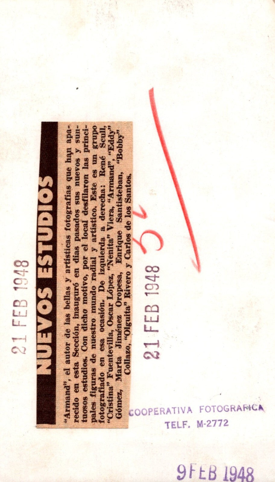 CUBA CUBAN NENITA VIERA + ARMAND + OROPESA + RIVERO 1948 PORTRAIT ORIG Photo 659