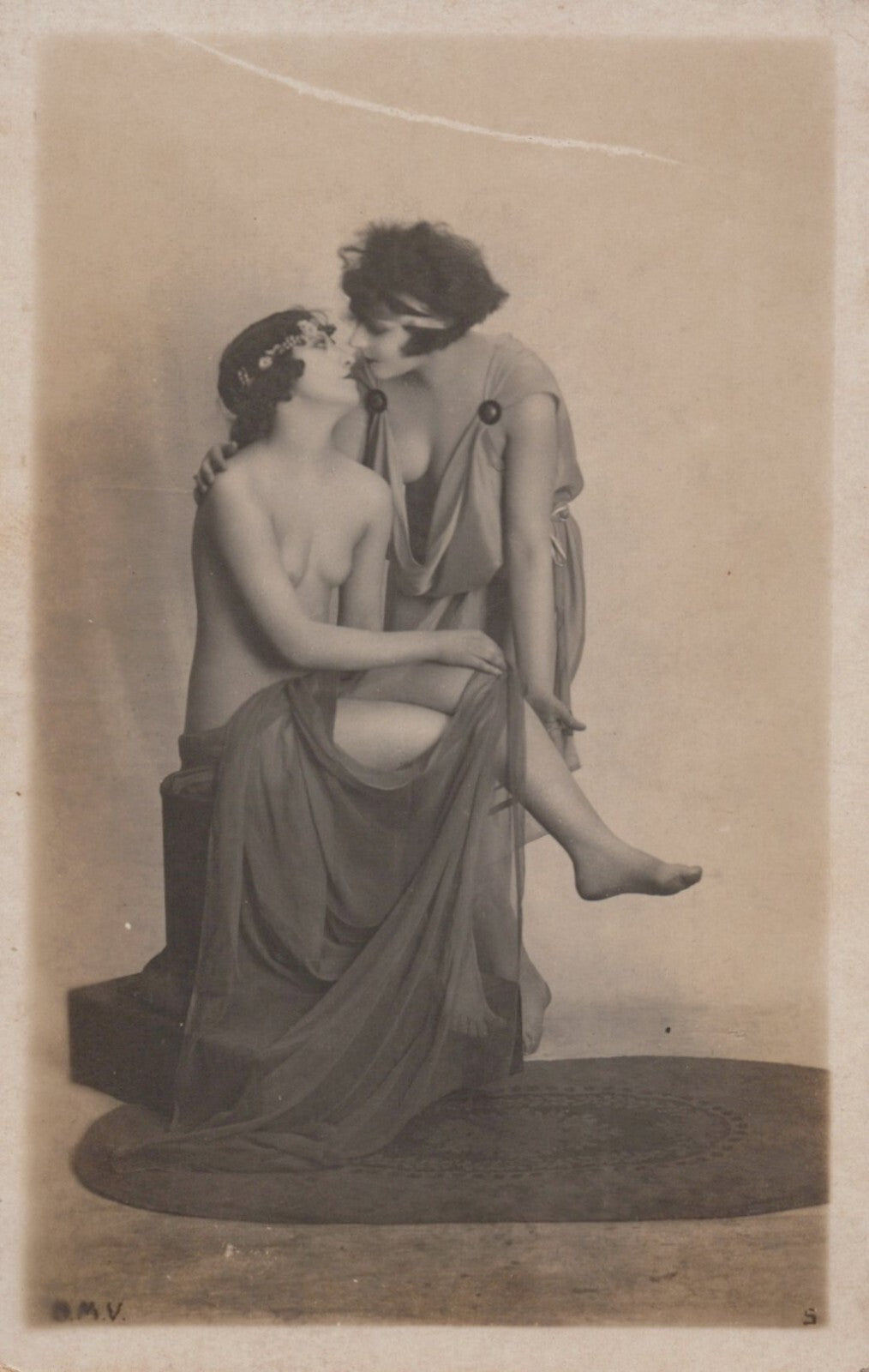 1910 FRENCH MODEL STUDIO Boudoir 2 GIRLS PHOTOGRAPHER Nude NAKED ORIG Photo RPPC