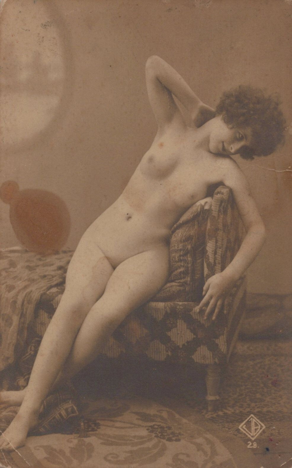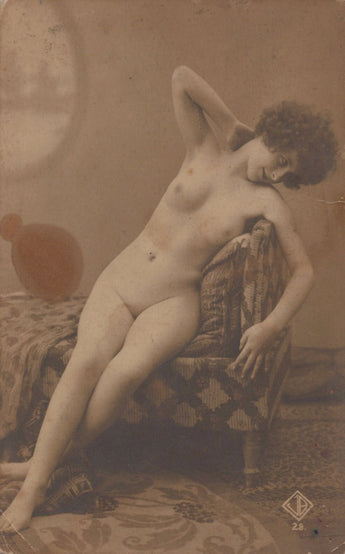 1910 FRENCH MODEL STUDIO Boudoir AGELOU PHOTOGRAPHER Nude NAKED ORIG Photo RPPC