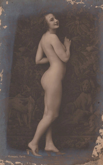 1910 FRENCH MODEL STUDIO Boudoir MANDEL PHOTOGRAPHER Nude NAKED ORIG Photo RPPC