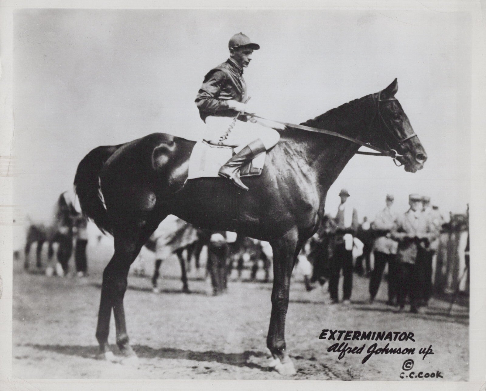 1921 EXTERMINATOR HORSE JOCKEY Alfred Johnson up PORTRAIT 1950s ORIG PHOTO 135