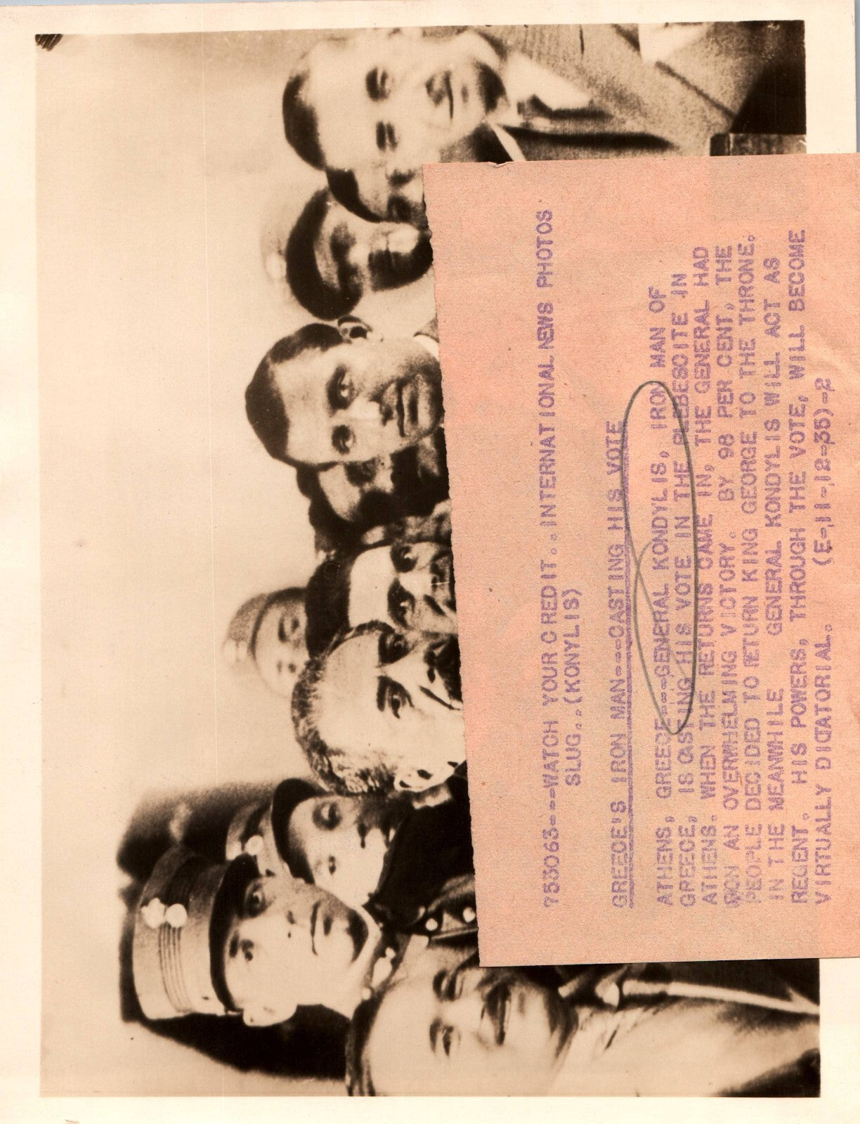 1935 GREECE General George Kondylis CASTING VOTE PORTRAIT ORIG PRESS PHOTO 873