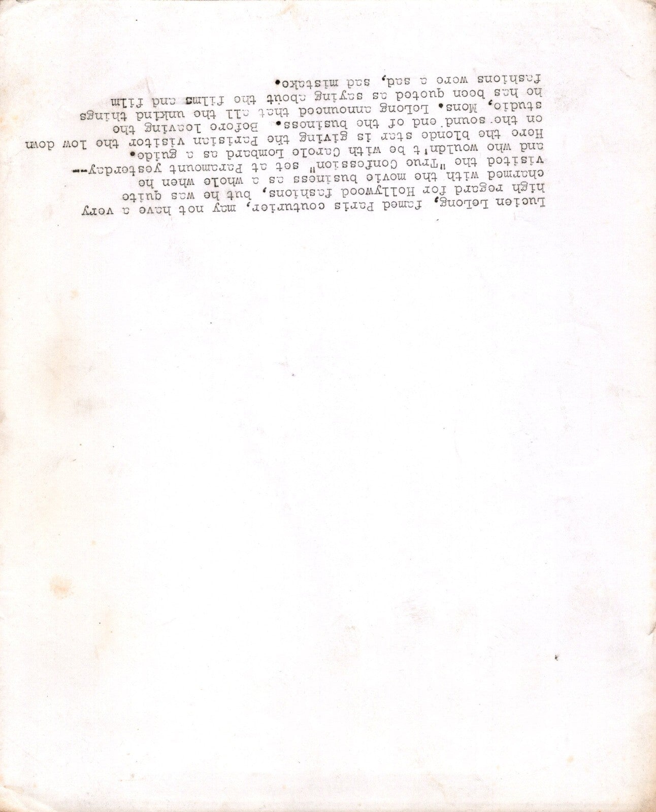 1937 HOLLYWOOD CAROLE LOMBARD + FASHION LUCIEN LeLong PORTRAIT ORIG Photo C20