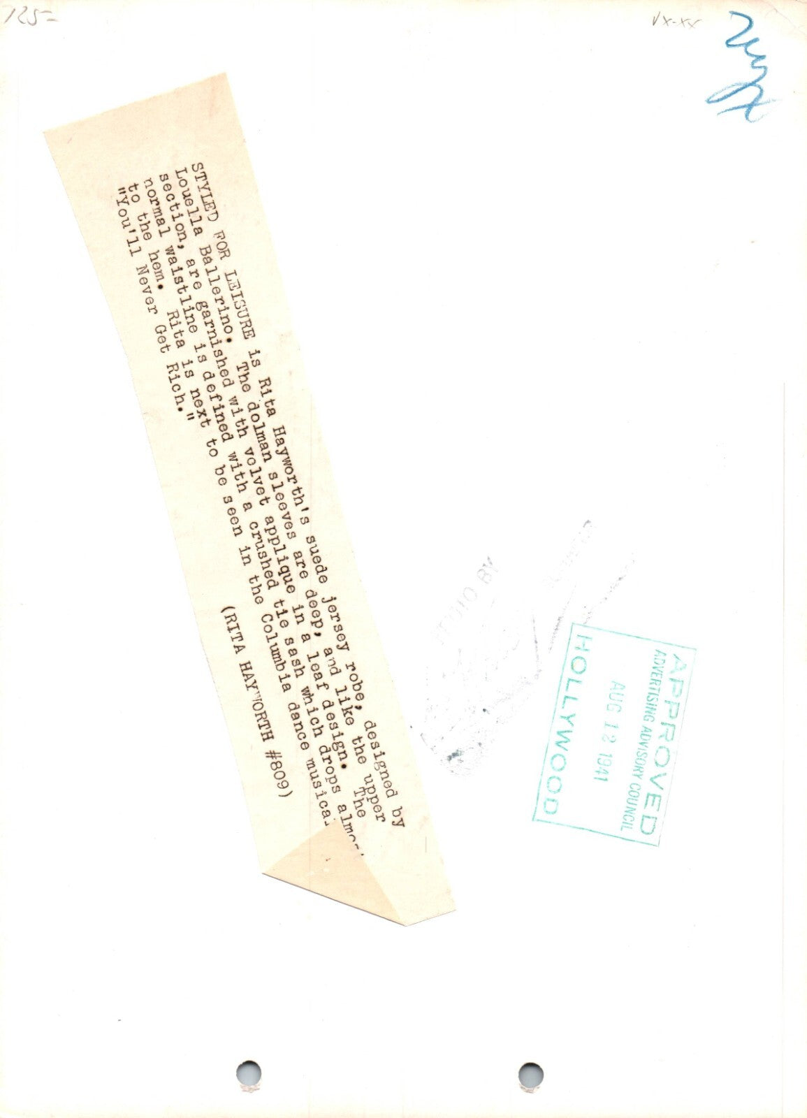 1941 RITA HAYWORTH STUNNING WHITEY SCHAFER PORTRAIT KEYBOOK ORIG Photo C20