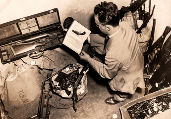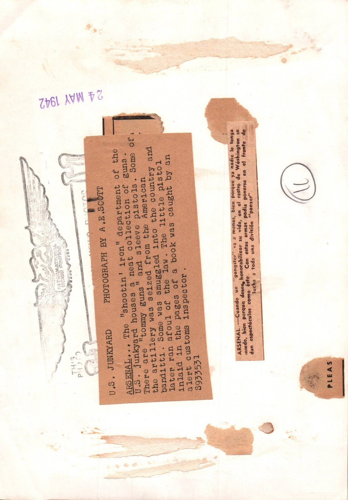 1942 US JUNKYARD SHOOTIN IRON SEIZED ARTILLERY MAIL ORIG PRESS PHOTO 873