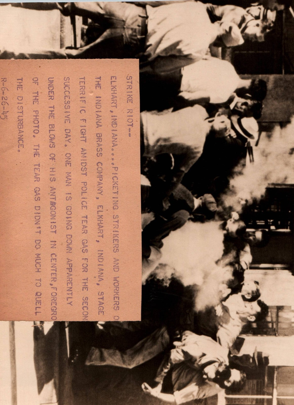 1945 INDIANA TEAR GAS BRASS COMPANY PICKETING STRIKERS ORIG PRESS PHOTO 873