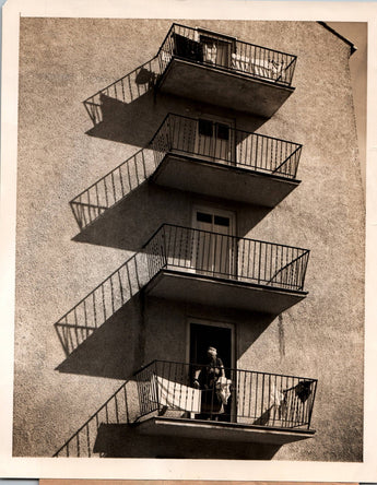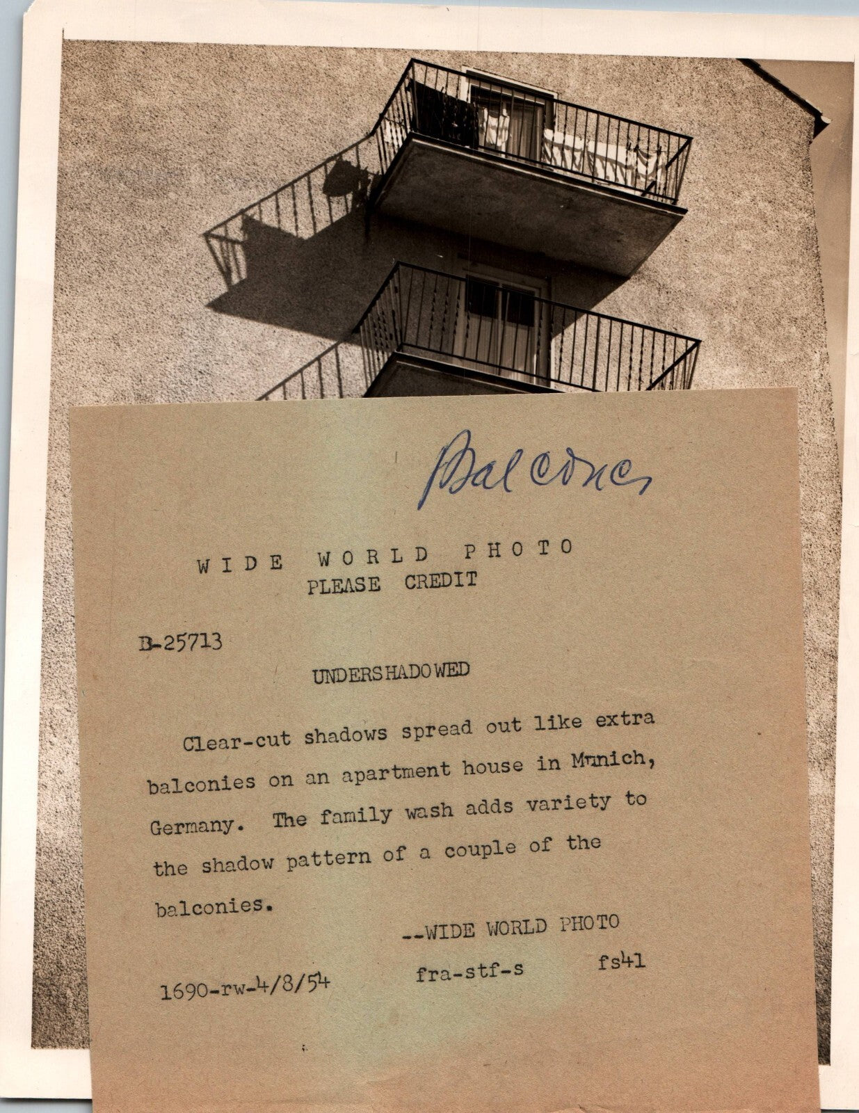 1954 GERMANY MUNICH BUILDING CLEAR CUT SHADOWS BALCONY ORIG PHOTO 873