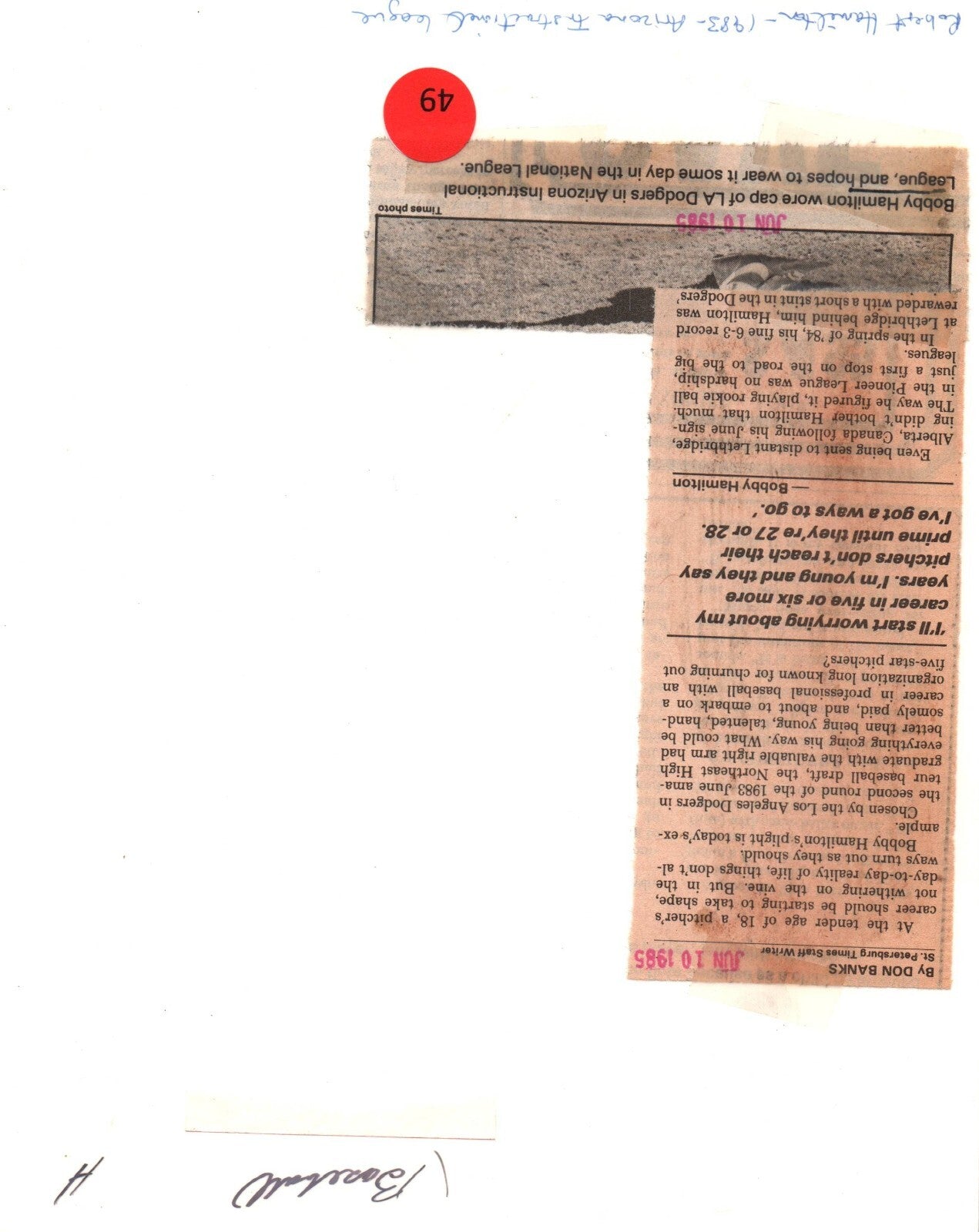 1985 BOBBY HAMILTON LA DODGERS PITCHER MLB PORTRAIT ORIG PHOTO 873