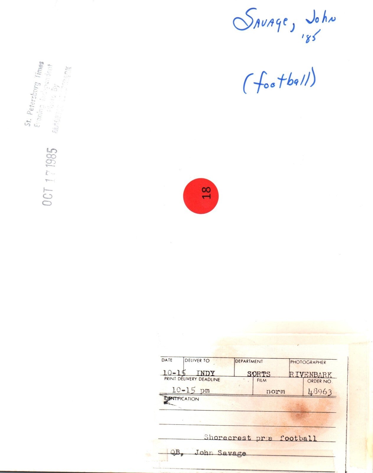 1985 FOOTBALL QUARTERBACK JOHN SAVAGE PORTRAIT ORIG PHOTO 873