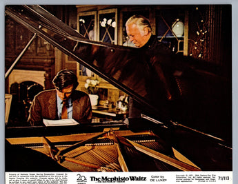 This original black and white photograph features actors Alan Alda and Curd Jürgens in a scene from the 1971 movie "The Mephisto Waltz". Measuring 10 x 8 inches, the glossy print is an authentic vintage piece and depicts the two celebrities in a captivating moment on set. The gelatin-silver production technique adds to the unique quality of this single piece photograph, which is sold unframed. Ideal for collectors of Hollywood memorabilia or fans of the actors, this item is a must-have for any movie enthusiast.