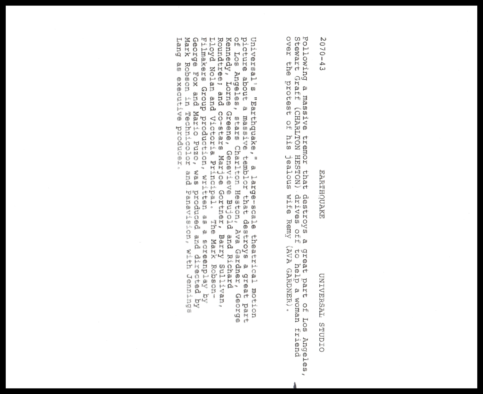 Don't miss out on the chance to own this iconic piece of movie history. Bid or buy now to capture the glamour and drama of "Earthquake" in your home.