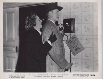 Relive the captivating drama of classic Hollywood with this original photo featuring Barbara Stanwyck and John Lund in "No Man of Her Own" (1950). This rare snapshot captures the emotional intensity and on-screen chemistry of two acclaimed actors, making it a cherished piece for collectors and enthusiasts of vintage Hollywood drama.