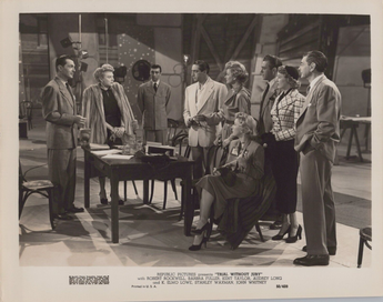 - 🌟 Barbra Fuller and Robert Rockwell in a gripping courtroom scene from 'Trial Without Jury.'