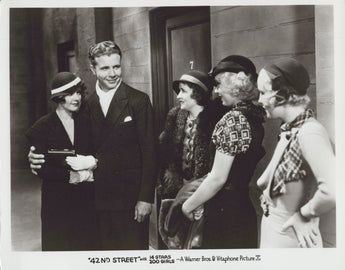 This original gelatin-silver photograph features the talented actors Bebe Daniels and Ruby Keeler in their iconic performance of "42nd Street" in 1933. Measuring 10 x 8 inches, this antique photograph is a must-have for any collector of celebrity memorabilia. The black and white image captures the essence of the scene, showcasing the actresses' genuine smiles and natural chemistry. This single piece photograph is an original, licensed reprint produced in the United States. It is a rare find for fans of vintage Hollywood and offers a glimpse into the past of an era long gone. Whether you are a seasoned collector or just starting out, this photograph is a timeless addition to any collection.