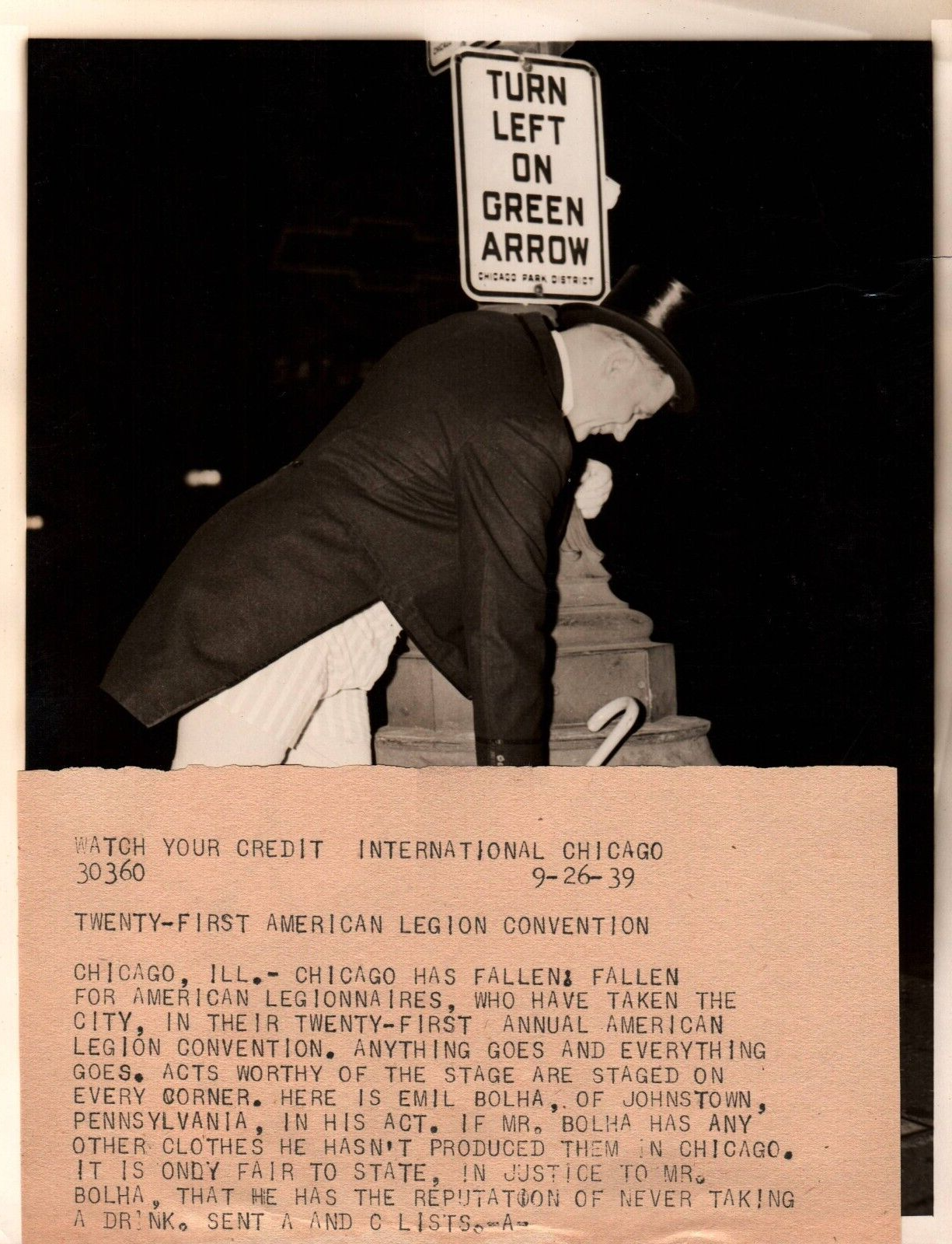 CHICAGO TWENTY-FIRST AMERICAN LEGION 1939 LEGIONNAIRE PORTRAIT PRESS PHOTO 873