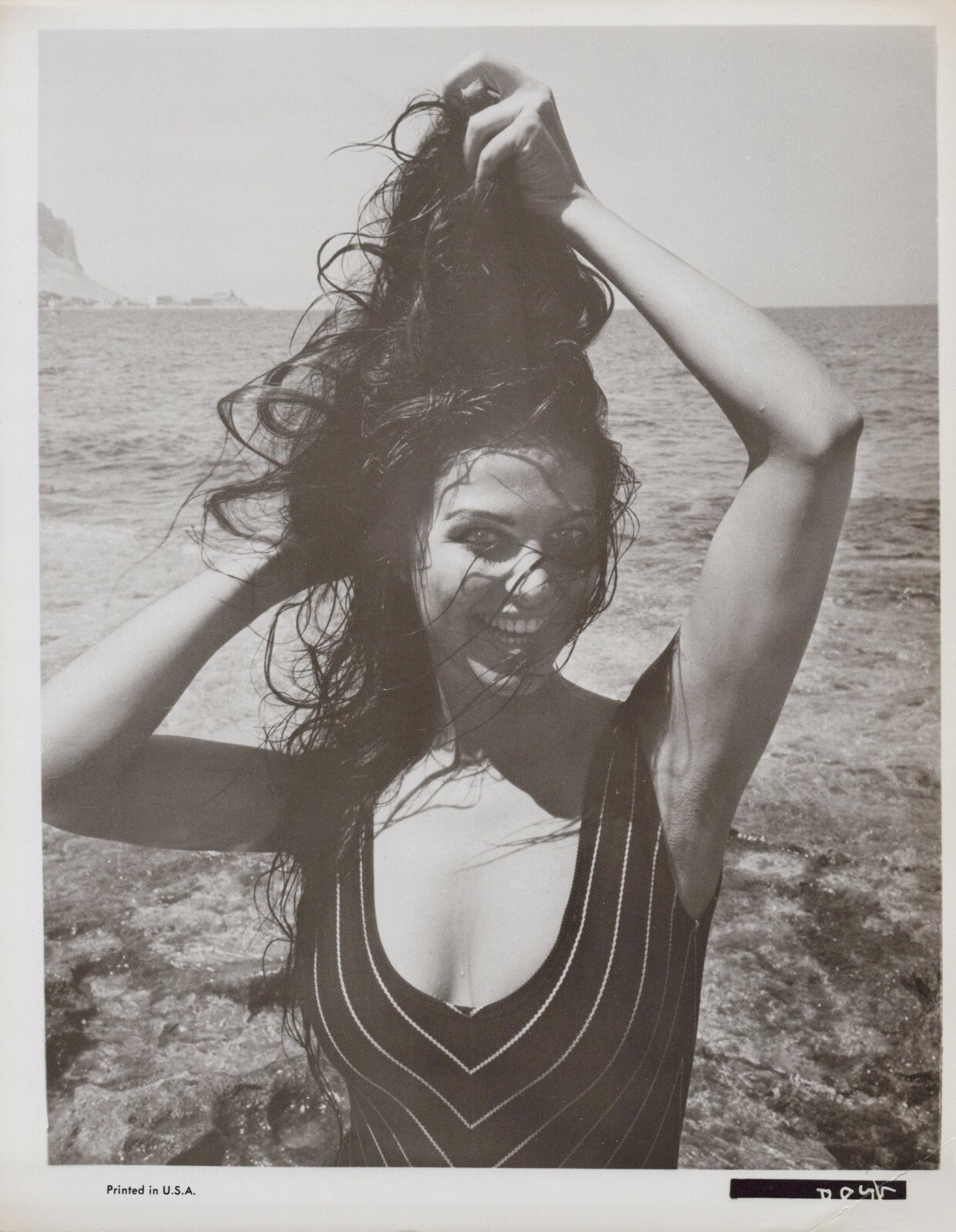 This stunning photograph features the iconic actress Claudia Cardinale in her role in the movie "Il gattopardo" (1963). The image captures her striking beauty and exotic allure, making it a must-have for any fan of Hollywood and celebrity culture. The photograph is an original gelatin-silver print and measures 8 x 10 in. It is unframed with a glossy finish and depicts Cardinale in a sensual pose, embodying the essence of cheesecake photography.