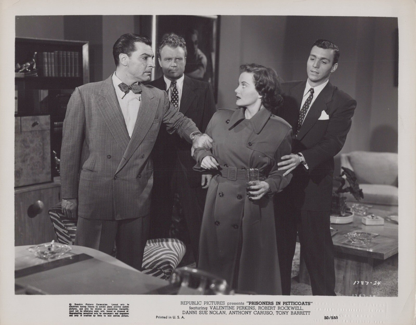 Step into the glamorous world of 1950s Hollywood with this captivating vintage photo featuring the talented Danni Sue Nolan, the dashing Robert Rockwell, and the enchanting Valentine Perkins. This photo is a true piece of cinematic history.
