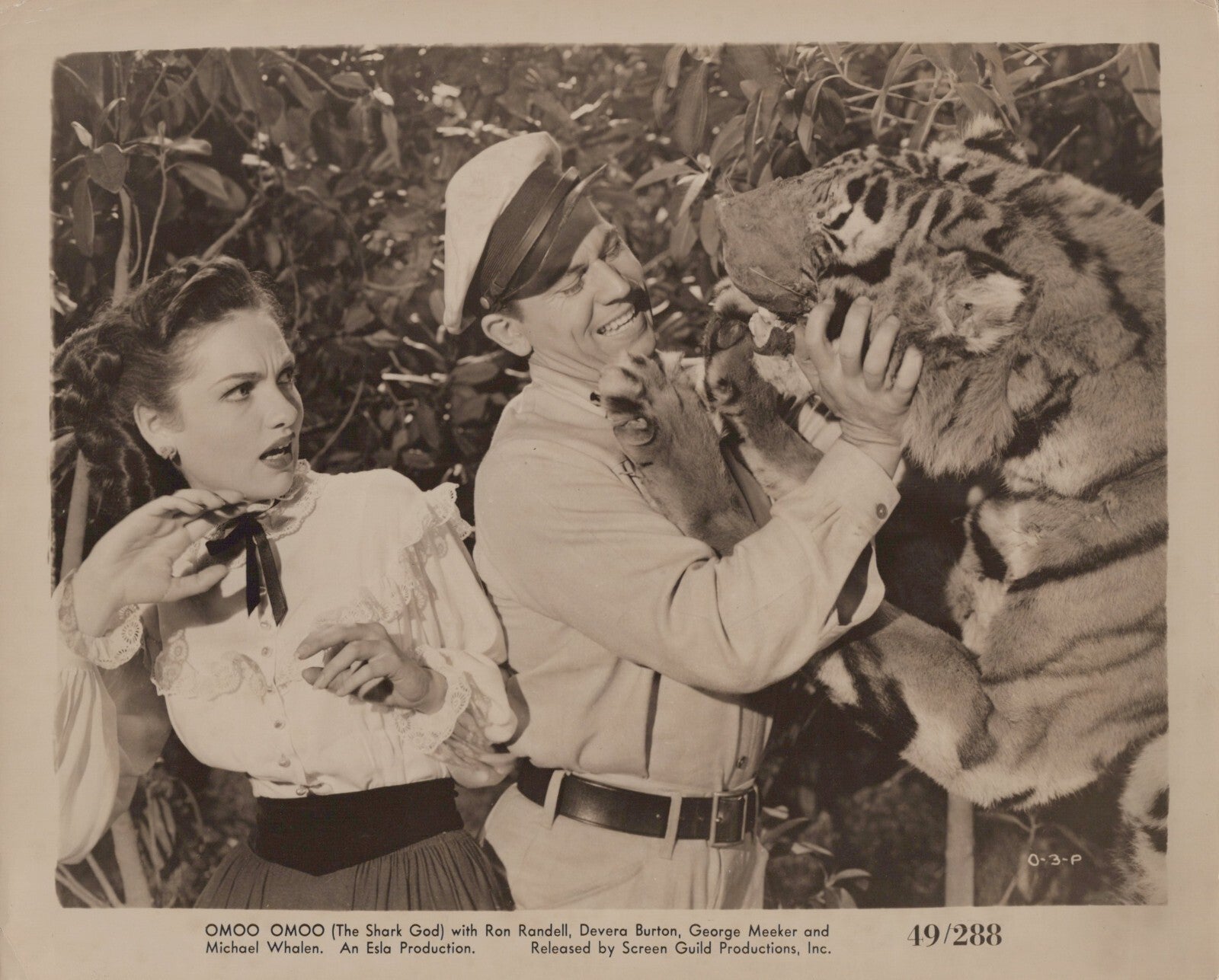 π Relive the magic of classic Hollywood with this vintage movie photo featuring the captivating duo of Devera Burton and Ron Randell in 'Omoo-Omoo the Shark God' (1949)! π