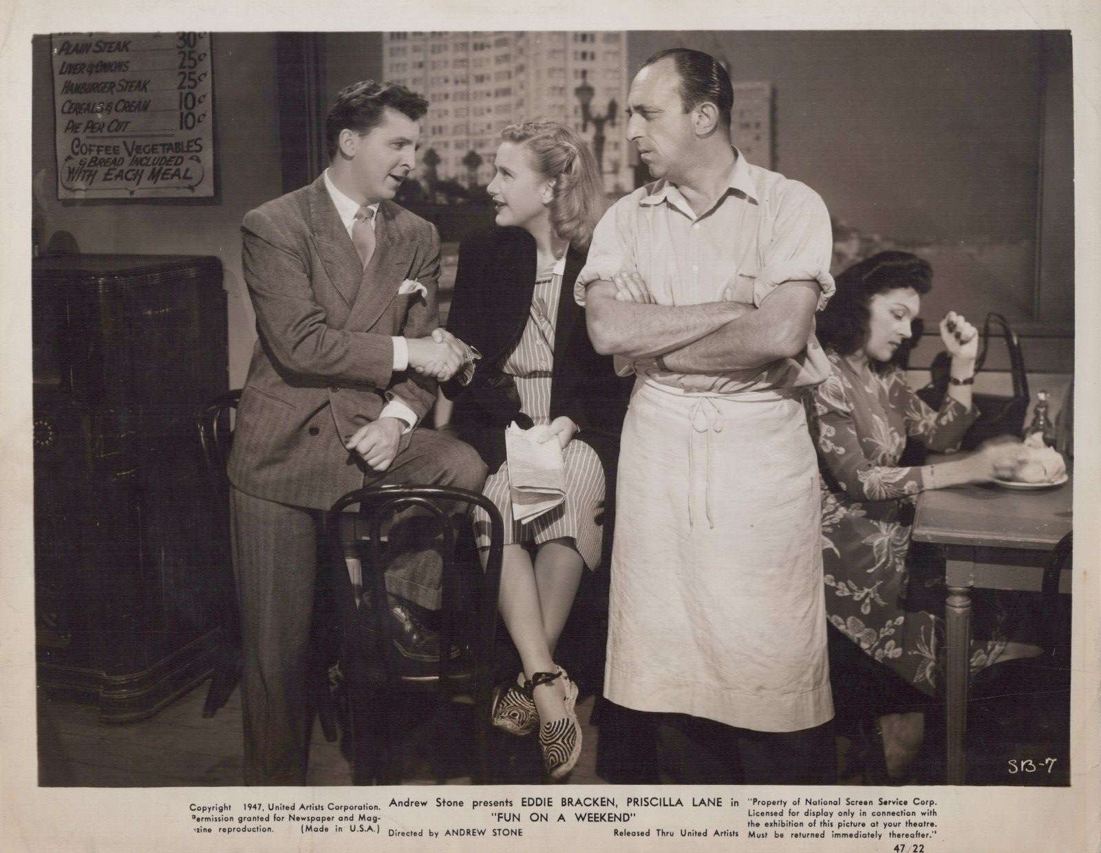 - 📸 Authentic vintage film photo showcasing Eddie Bracken and Priscilla Lane in the iconic "Fun on a Weekend."