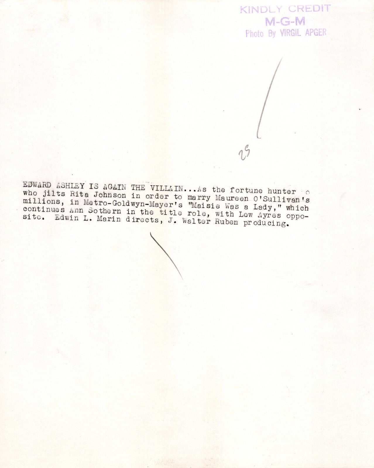 Edward Ashley in Maisie Was a Lady (1941) ❤ MGM Photo by Virgil Apger K 248