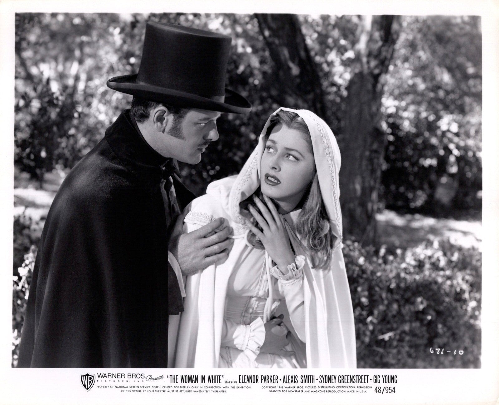 Seize the opportunity to own a piece of classic romance history. Bid now and add this vintage Warner Bros. movie photo to your collection. Let the enchanting pairing of Eleanor Parker and Gig Young in 'The Woman in White' transport you to the timeless allure of Hollywood's golden era with every glance.