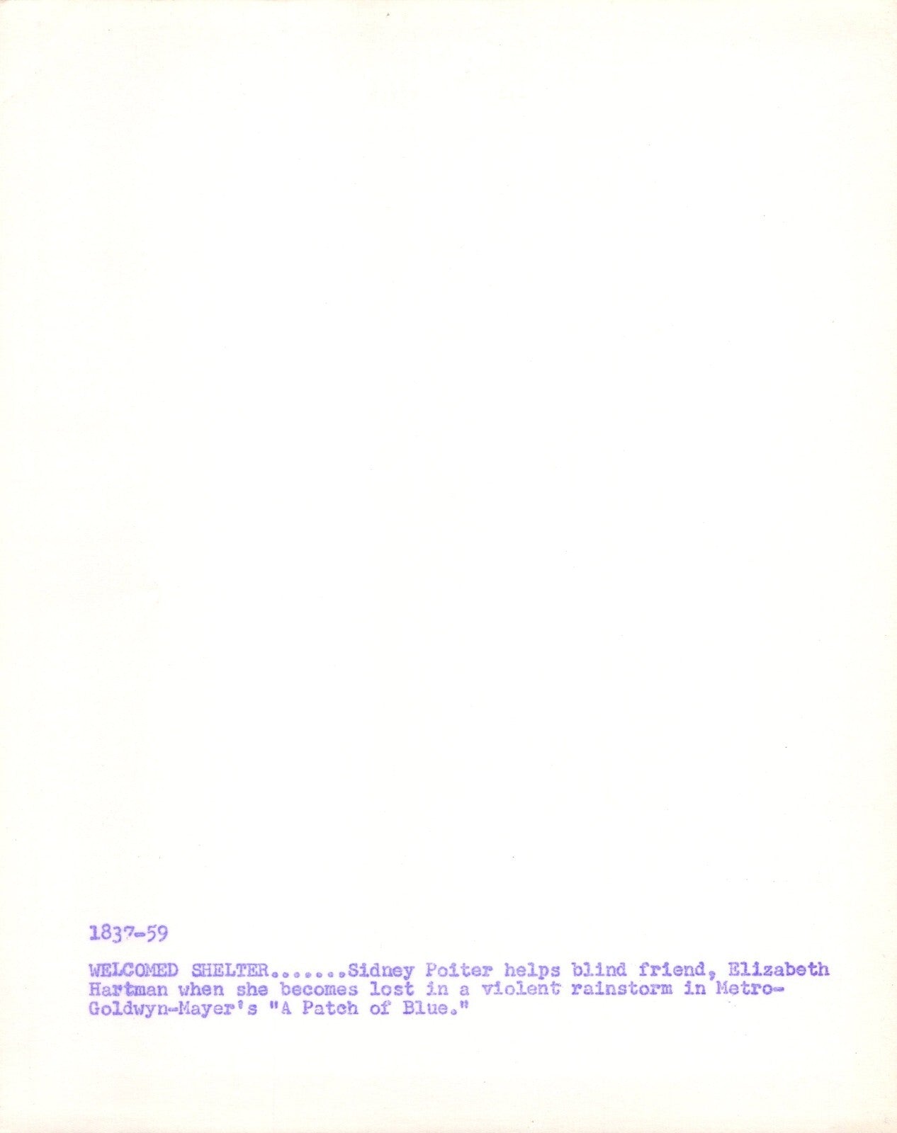 Elizabeth Hartman + Sidney Poitier in A Patch of Blue (1965) β€π¬ MGM Photo K 209