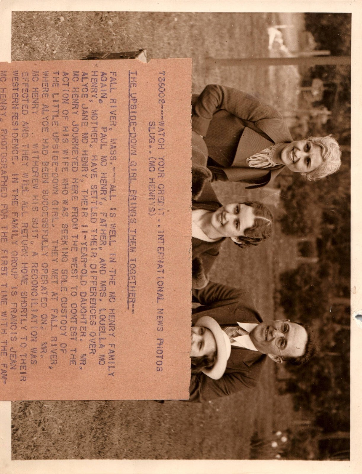 FALL RIVER MASS FAMILY PAUL MC HENRY + ALYCE JANE PORTRAIT 1935 PRESS PHOTO 873