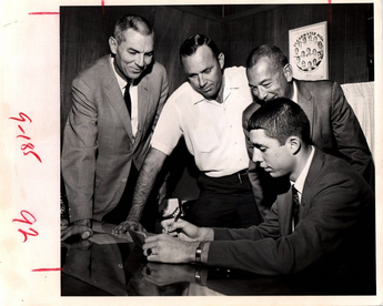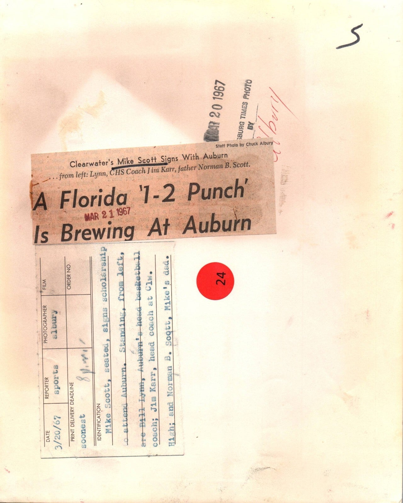 FOOTBALL MIKE SCOTT SIGNS COACH JIM KARR PORTRAIT PRESS ORIG PHOTO 873