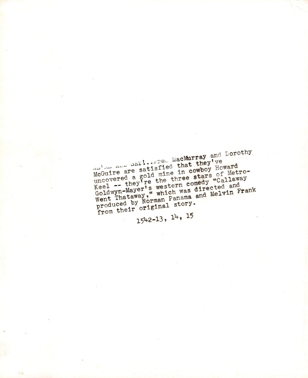 Fred MacMurray + Dorothy McGuire in Callaway Went Thataway (1951) ❤ Photo K 696
