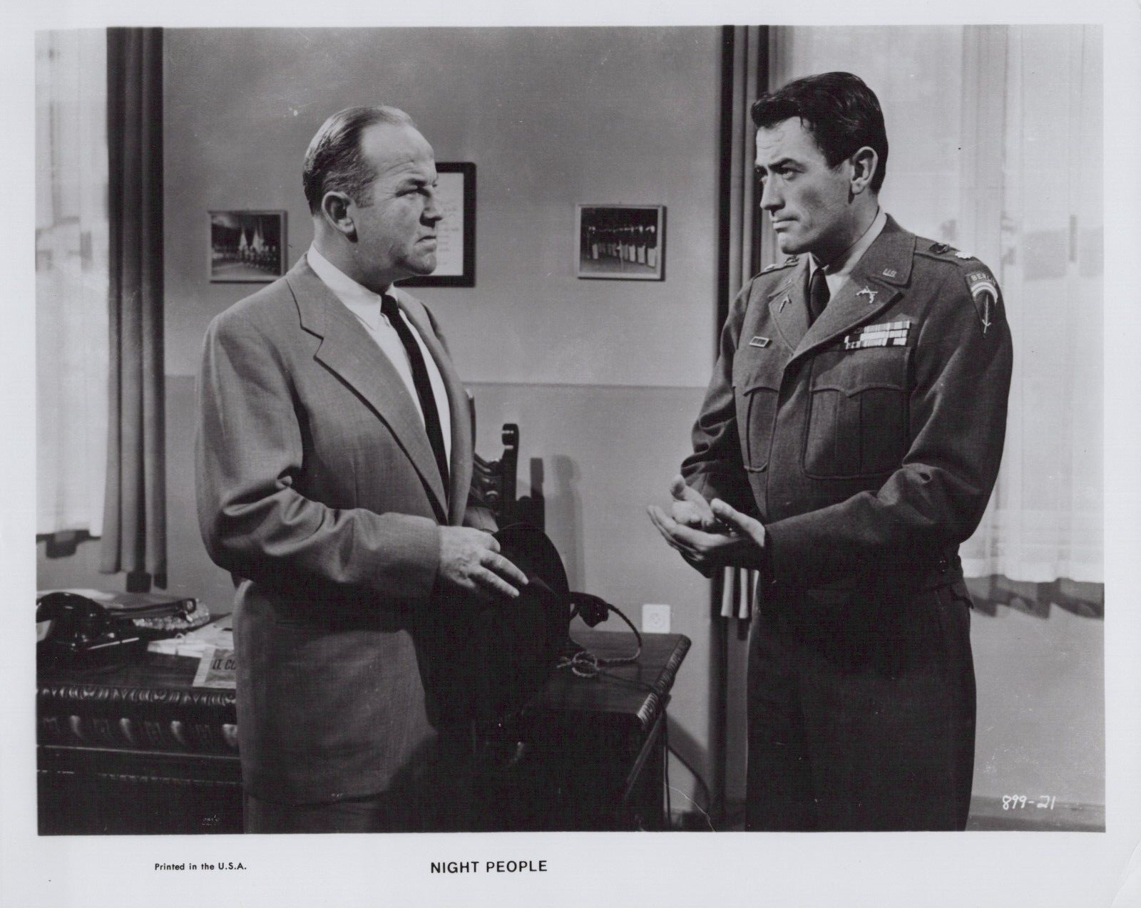 Título: "Rare Gregory Peck & Broderick Crawford 'Night People' Photo – Classic Hollywood Collectible"